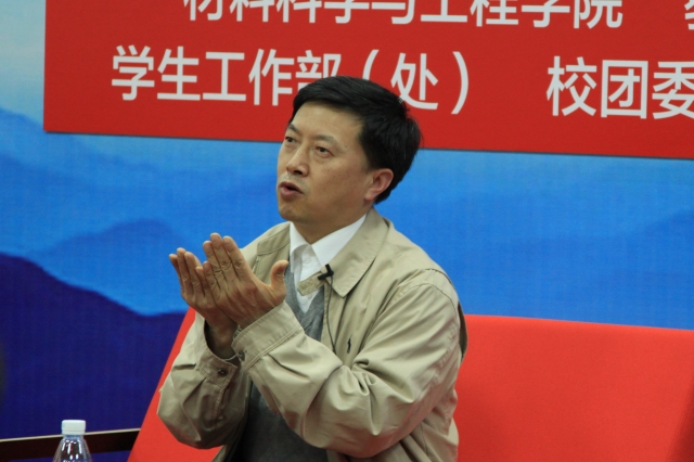 “所谓‘材料’,理应拆开来解析,我们为了某一目的合成特定的料,将料加工成材,再由材铸造成器。材料涵盖面广,其技术的不断发展,推动着社会进步。”刘昌胜以此为开场白,激起了在场“材料人”的专业认同感。他分析了“爱一行干一行”与“干一行爱一行”之间的关系,并结合自身求学经历、学科发展前景、国内外办学差异等对学生遇到的困惑进行了详细解答。刘润辉表示,科研工作者要善于从科研中发现,再进行突破,最终实现创新,“大学生要努力发现自己的兴趣,在兴趣的驱动下不断奋斗,努力实现梦想”。