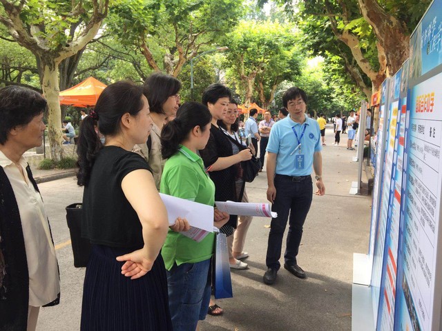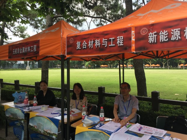 6月18日,正值中国传统节日-端午节,2018年太阳成集团tyc33455cc招生咨询会如火如荼地召开了。大草坪两旁林荫大道的各专业咨询台吸引了众多家长和高考学子们。材料学院副院长李欣欣、专业责任教授顾金楼和朱以华、无机系系主任曾惠丹、高分子系系主任周权和学院办公室主任顾婷都来到咨询会现场,悉心地为高考学子和家长们做着解答。