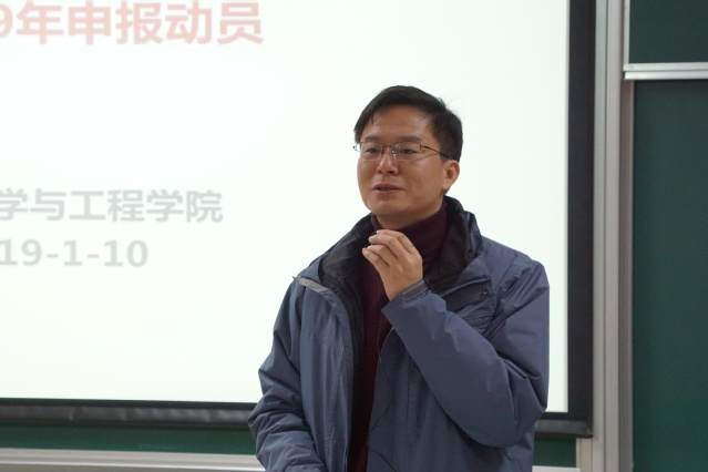 唐颂超做会议总结,他对学院2018年基金申报工作取得的成绩予以了肯定,同时就存在的问题和2019年基金申报进行了动员。他指出全院教师对待基金申报一定要做到两个字“认真”,希望在新的一年再接再厉,有更多人写申请,有更多人获批,取得更丰硕的成果。