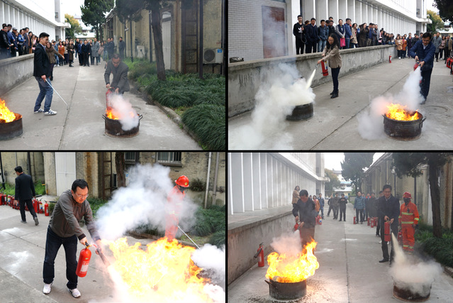 在近2个小时的安全知识培训讲座结束后,学院组织全体教职工在图书馆西侧马路进行了灭火器使用培训。首先,校保人员向大家讲解了灭火器的基本知识和使用要点;随后,点燃起两个着火桶,每位教师都拿起灭火器进行了操作练习。在练习过程中,校保人员不时提醒操作规范,并纠正错误动作。演习进一步增强了教师的消防意识,提高了教职工在应对火灾事件时相互配合、使用正确方式逃离现场的能力,为消防安全提供了更加有力的保障。