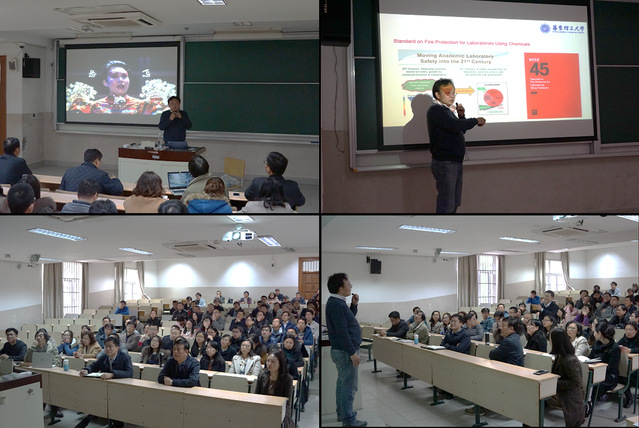 2019年4月4日,太阳成集团tyc33455安全宣传会议在徐汇校区四教102室召开,学院党委书记唐颂超,副院长林绍梁(主持工作),及100多名教职工参加了本次会议。会议邀请了校安全办主任徐宏勇做实验室安全知识培训讲座。