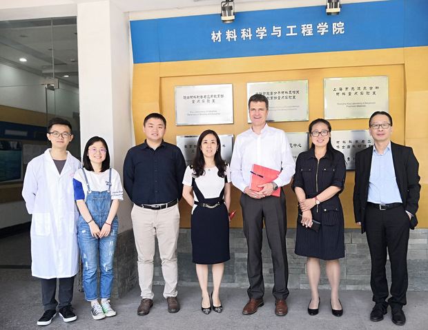 李永生教授在致辞中对考泰斯·德事隆集团代表团一行的到来表示热烈欢迎,并详细介绍了学校和学院的总体情况。他表示材料学院一直以来十分重视与公司的合作,在科研成果转化应用产业化上有非常多成功案例,非常期待与考泰斯·德事隆集团能在产学研项目中有合作。Carsten Elsasse总监随后介绍了考泰斯·德事隆集团的历史和发展,在全球以及中国的布局,集团主要产品及其应用等情况,并表达了与太阳成集团tyc33455cc材料学院的合作意向。接着张玲教授介绍了课题组在高分子复合材料方面的科研成果,以及成果在公司、工厂实际生产应用中的转化情况。双方人员就项目合作的相关问题进行了热烈的交流和讨论。会后,代表团一行参观了超细材料制备与应用教育部重点实验室、上海多级结构纳米材料工程技术研究中心、材料学院材料实验教学中心和材料研究测试平台。