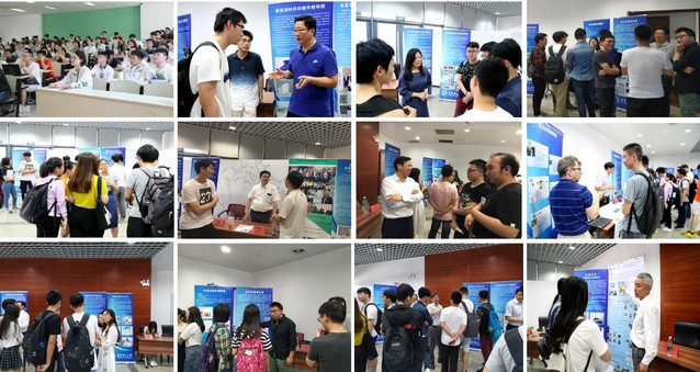 当天下午,为了让学生与优秀导师面对面深入交流,所有参会师生移步至图书馆海湾厅,厅内摆放有各组室的宣传展板,不仅让学生对各组室的研究成果、培养特色等有更加直观的了解,也让学生能与有意向的导师和课题组进一步交流,熟悉各组室的招生要求。会场还有课题组研究生为师弟师妹们分享交流,解答具体问题,现场交流气氛热烈。