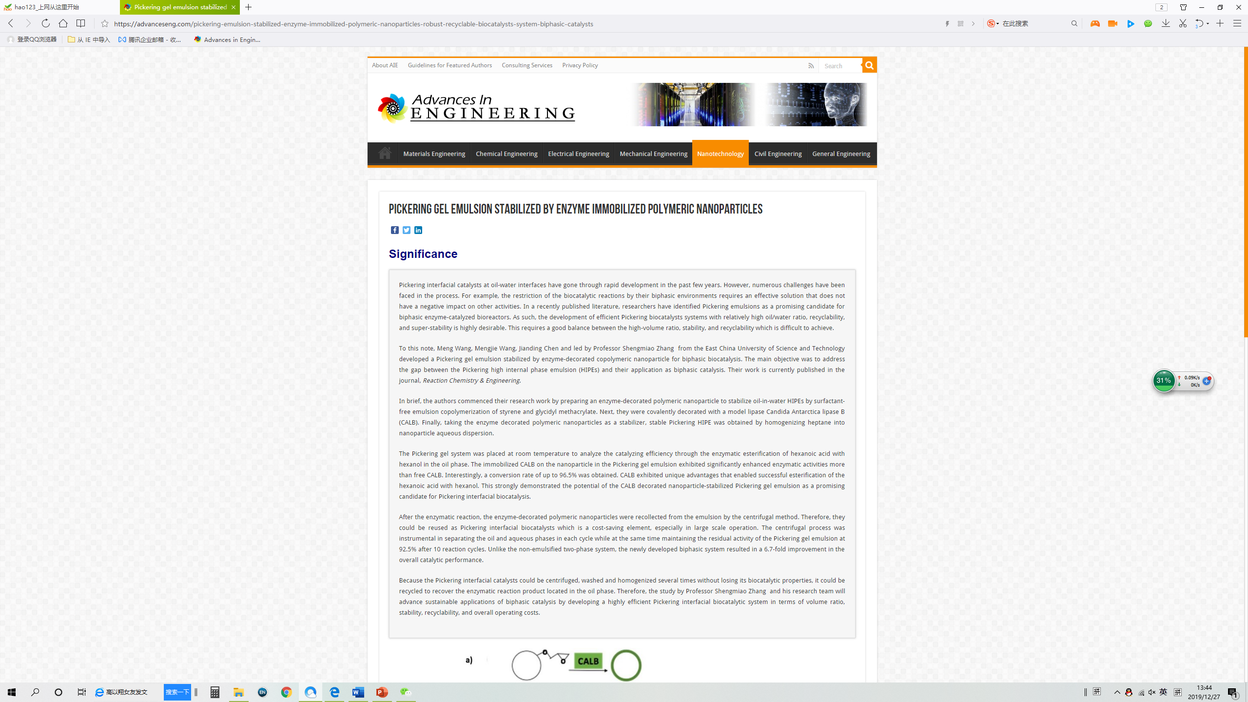 近日,国际著名工程学网站“Advances in Engineering”(简称AIE)公开报道了我校太阳成集团tyc33455章圣苗副教授课题组在酶固定化聚合物纳米粒子稳定的Pickering凝胶乳液两相酶催化体系的研究成果。