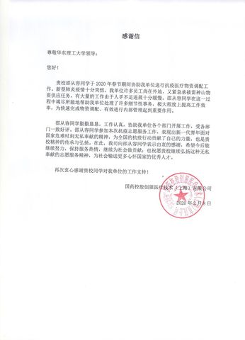 我院18级本科生邵从容参与国药控股创服医疗技术(上海)有限公司向雷神山物资调配工作,在志愿服务工作中表现突出,收到了来自公司的表扬信。校团委微信公众号将邵从容的事迹推出后,央广网、文汇网、东方网、《上海科技报》等多家媒体均进行转发报道。
