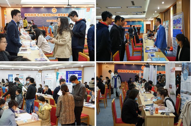 为了给用人单位与毕业生搭建交流平台,推动学院就业工作,助力毕业生顺利就业,4月14日下午,材料学院2021届毕业生专场招聘会在逸夫楼演讲厅及逸夫楼大厅举行。学院党委书记袁媛、院长林绍梁、校学工部副部长郑东、学院党委副书记戴诚安、学院教师等到招聘会现场与用人单位和毕业生进行交流。