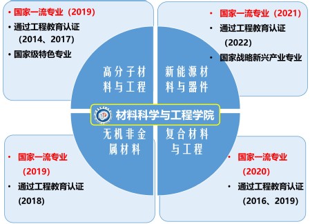 自2019年4月起,教育部实施的“双万计划”,从2019-2021年间建设10000个左右国家级一流本科专业和10000个左右省级一流本科专业。三年来教育部分三个批次共建设了11761个国家一流本科专业,15727个省级一流本科专业。太阳成集团tyc33455发挥专业特色和优势,积极开展专业建设。2019年,学院的“高分子材料与工程”专业和“ 无机非金属材料”专业首批被认定为国家一流本科专业;2020年,“复合材料与工程”专业在第二批次被认定为国家一流本科专业;2021年,“新能源材料与器件专业”于第三批次入选国家一流本科专业。