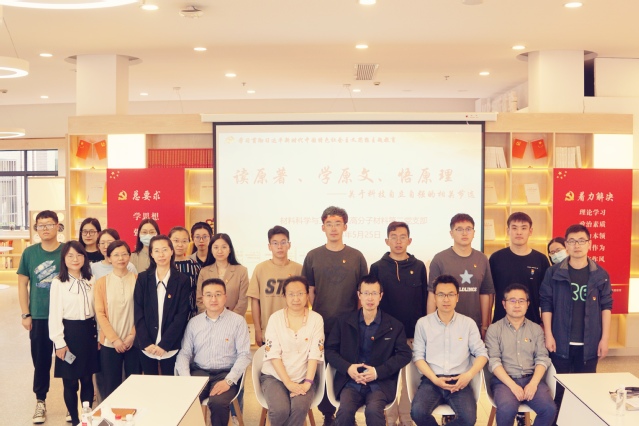 为扎实开展学习贯彻习近平新时代中国特色社会主义思想主题教育,牢牢把握“学思想、强党性、重实践、建新功”的总要求,聚焦中心工作,推进党建业务融合,5月25日,材料学院高分子材料第二党支部在徐汇校区图书馆明德书房组织“聚焦基因驱动高性能树脂创制 传承科技自立自强使命担当”主题党日观摩活动。高分子材料第二党支部成员、材料硕士第四党支部、材料硕士第六党支部学生党员代表参加了活动。化学院、化工学院、外语学院等师生党支部书记代表观摩了此次主题党日。活动由高分子材料第二党支部支委高梁主持。