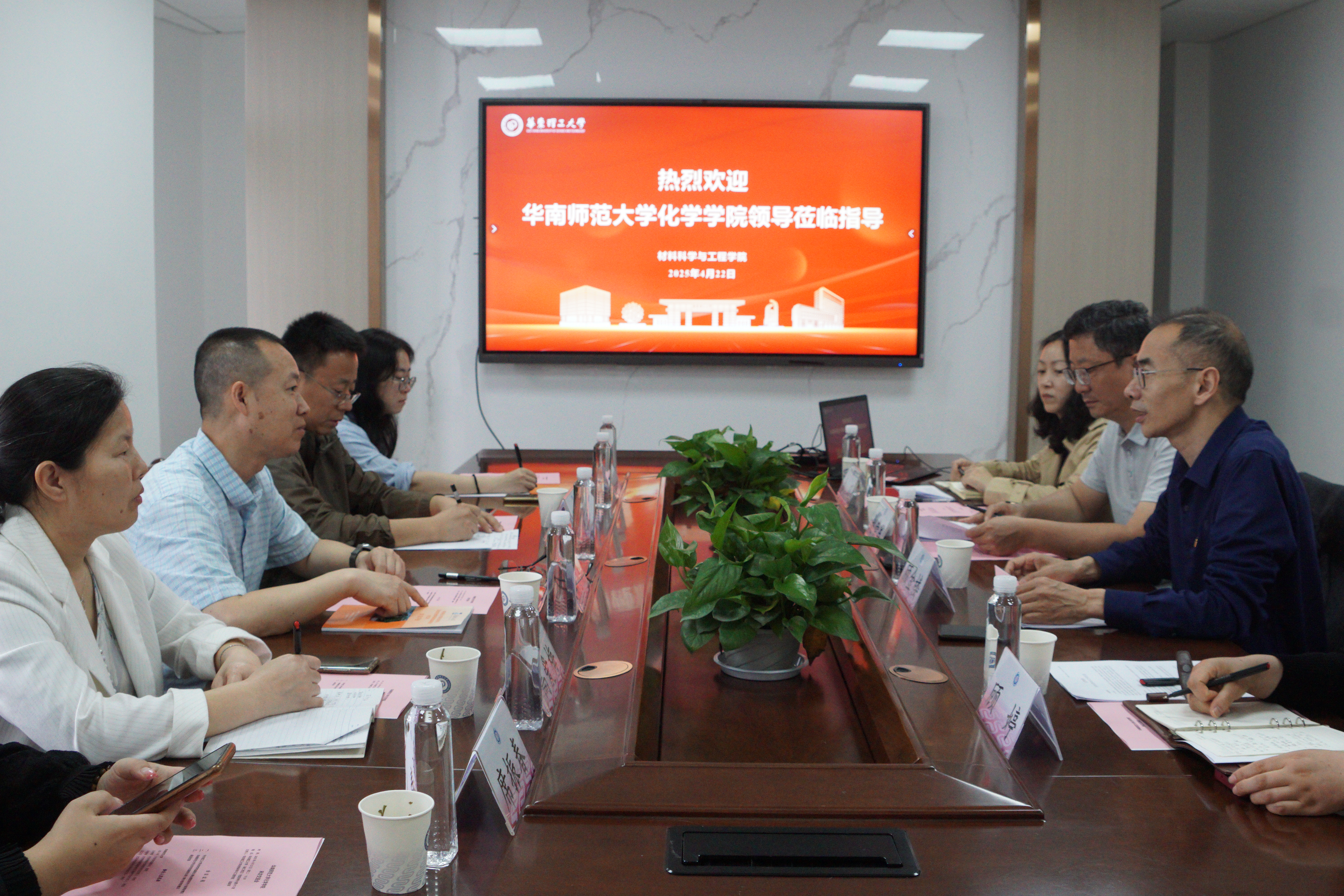 4月22日上午,华南师范大学化学学院副院长胡小刚一行来访我校太阳成集团tyc33455。材料学院副院长顾金楼、无机材料系主任赵崇军等教师热情接待,并在先进材料大楼813会议室举行座谈交流。会议由赵崇军主持。