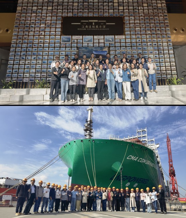 走进江南造船厂,仿佛开启了一场跨越时空的中国近代工业之旅。这座承载着中国造船业一个半世纪记忆的标杆企业,如今已成为全球领先的造船巨头。展示馆内,珍贵的历史照片、实物模型和全息影像,生动再现了江南造船厂从初创到现代化的蜕变历程。中国第一炉钢、第一门钢炮、第一艘铁甲兵轮……这些“第一”不仅是中国近代工业的里程碑,更是先辈们追求富国强兵、不懈努力的历史见证。从纯电动散货船到液化天然气运输船,从风帆助推油船到智能船舶系统,当代科技工作者和工匠们的孜孜以求和不断创新,更是让中国制造在世界上崭露头角。车览民品厂区时,百米高的龙门吊、庞大的船坞构件、建造中的巨大船舶分段,无不彰显着中国制造的硬核实力。在近七十米高、四百米长的“钢铁巨兽”——液化天然气运输船前打卡,教职工们纷纷感叹中国在绿色船舶领域的世界领先地位。临近结束,意犹未尽的老师们纷纷购买福建舰模型留念,将这份自豪与荣耀永远珍藏。